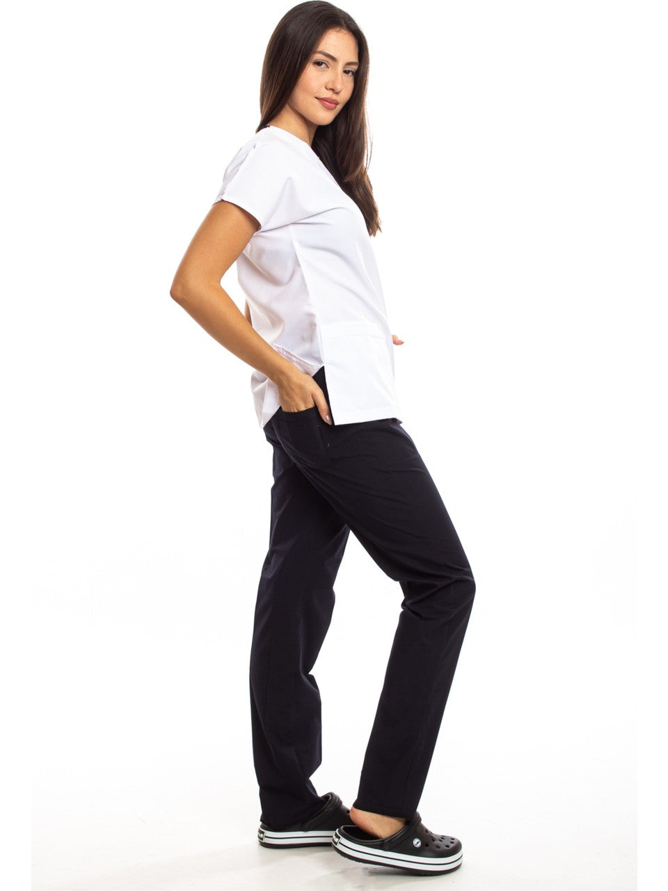 სპეციალურად შექმნილია ჯანდაცვის პროფესიონალებისთვის. ქსოვილის ტიპი: ზედა ნაწილი — ალპაკა, ქვედა ნაწილი — ტერის ბამბა პროდუქტის მოდელი: Greys პროდუქტის ფერი: ზედა ნაწილი — თეთრი, ქვედა ნაწილი — მუქი ლურჯი პროდუქტი დამზადებულია მაღალი ხარისხის ქსოვილისგან კომფორტული გამოყენებისთვის. ზომების ცხრილი: 34-36: XXS 38: XS 40: S 42: M 44-46: L 46-48: XL