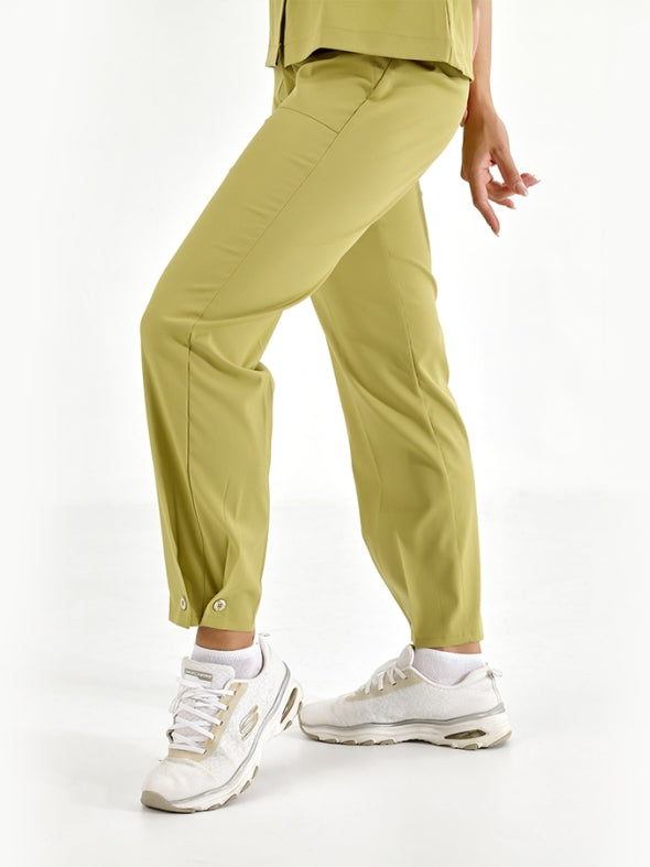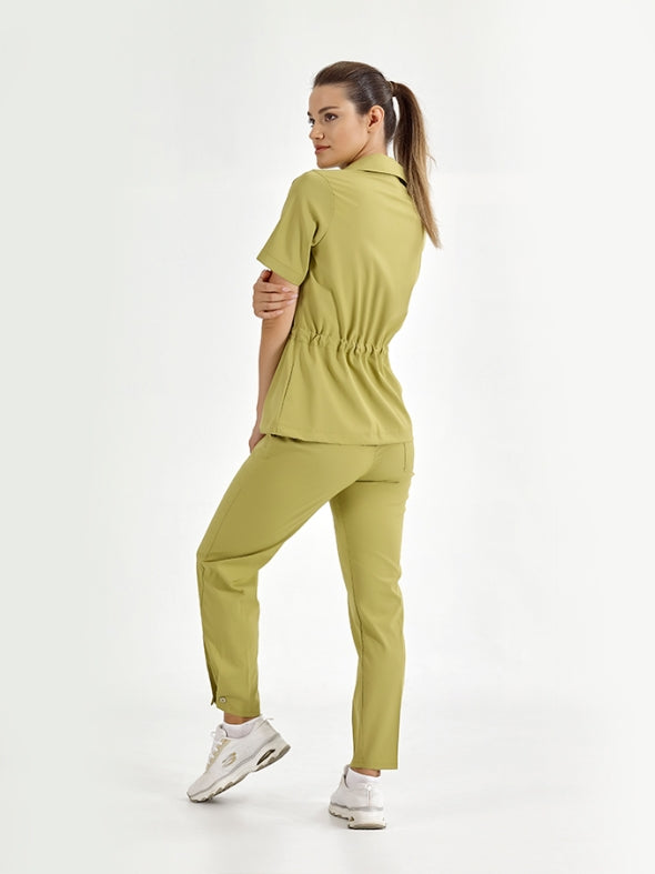 ანტეპის ფისტას ფერის რეტრო ქალის სამედიცინო სკრაბების ნაკრები ექიმისთვის/ექთნისთვის, ლუქს ელასტიური ქსოვილი