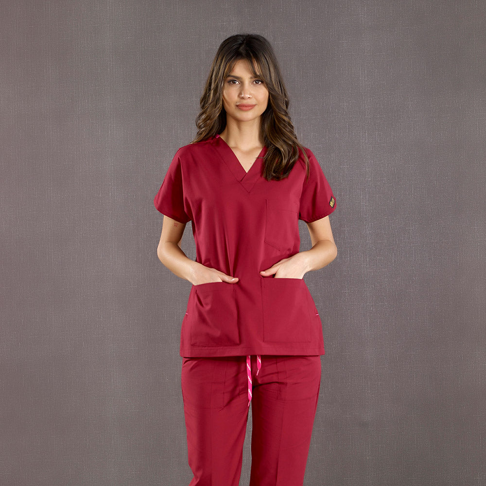 ბორდოს ფერის სამედიცინო სკრაბი. უნისექსი ექიმებისთვის და ექთნებისთვის.მედ. პერსონალისთვის