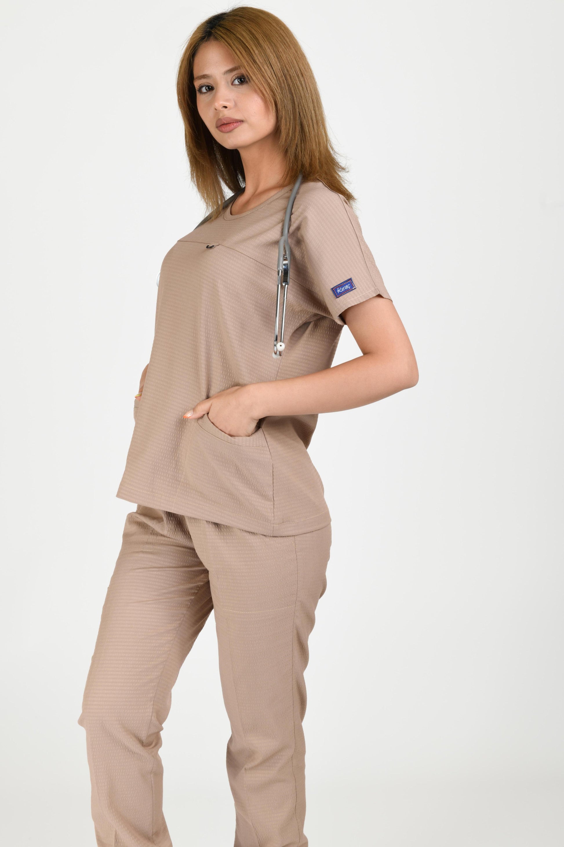 ეს უნიფორმა გამოირჩევა თანამედროვე დიზაინით, რომელიც აერთიანებს ჯანდაცვის მუშაკებისთვის საჭირო კომფორტს, გამძლეობასა და პროფესიონალიზმს. ესთეტიკური და ფუნქციური დეტალების წყალობით, ის უზრუნველყოფს კომფორტულ ტარებას მთელი დღის განმავლობაში.