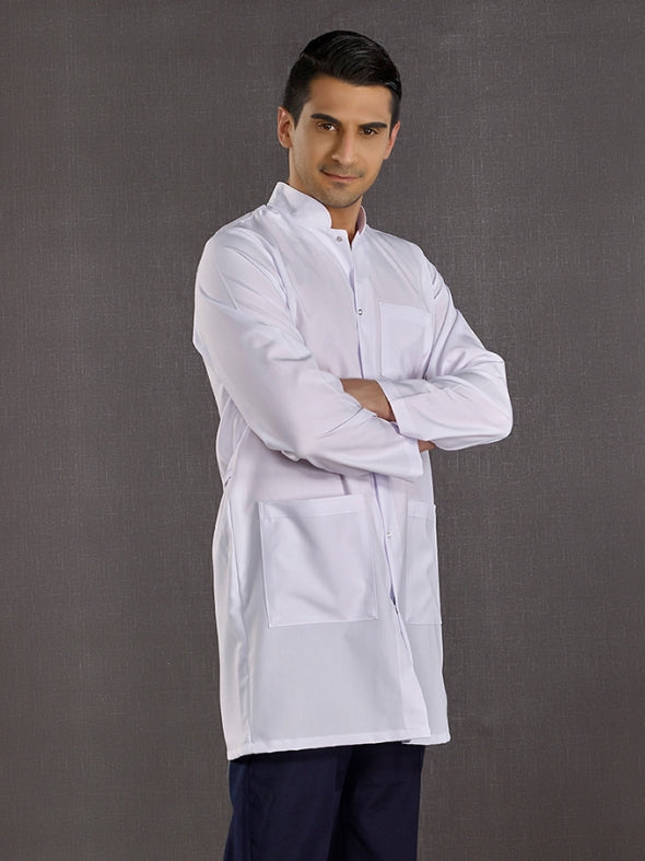თეთრი მამაკაცის სამედიცინო ხალათი, ალპაკას ქსოვილი, "ჯაჯის" საყელოთი