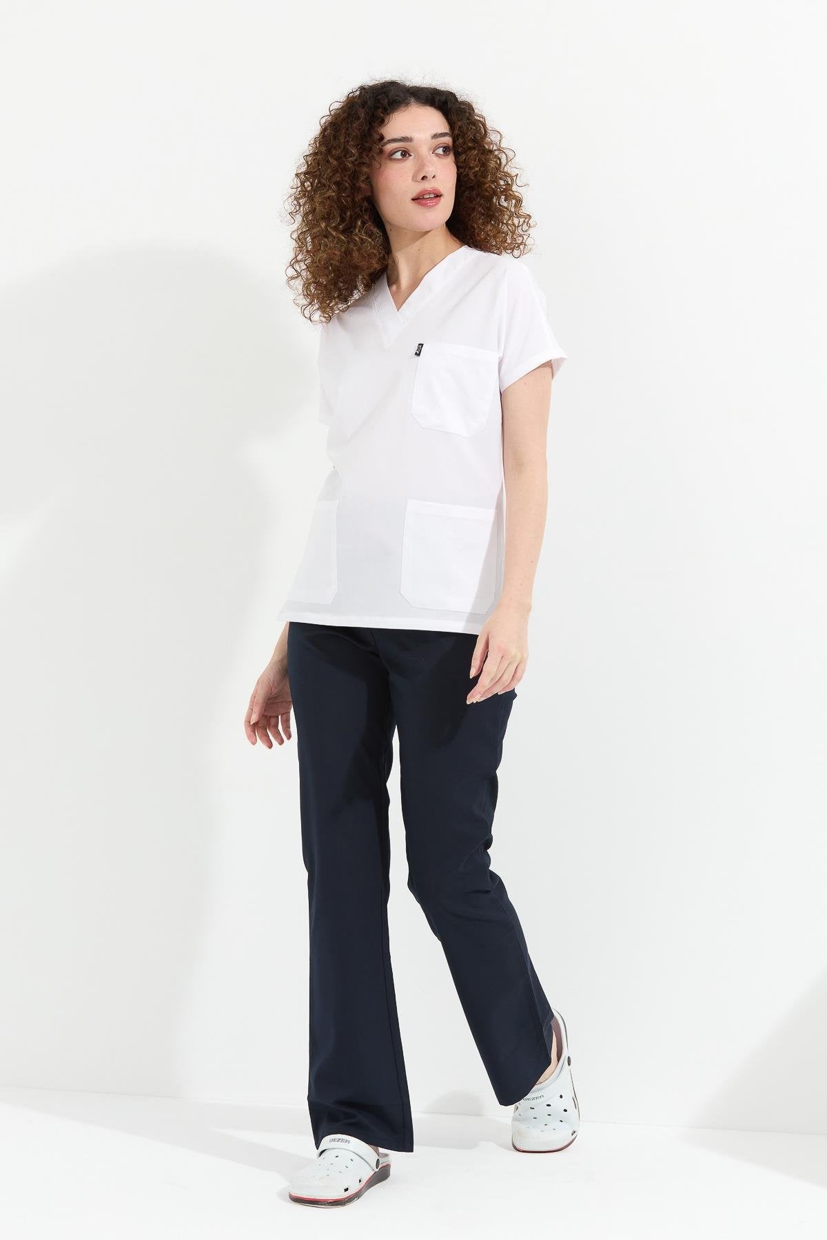ლიკრის ექიმის/ექთნის უნიფორმის ნაკრები, თეთრი, მუქი ლურჯი