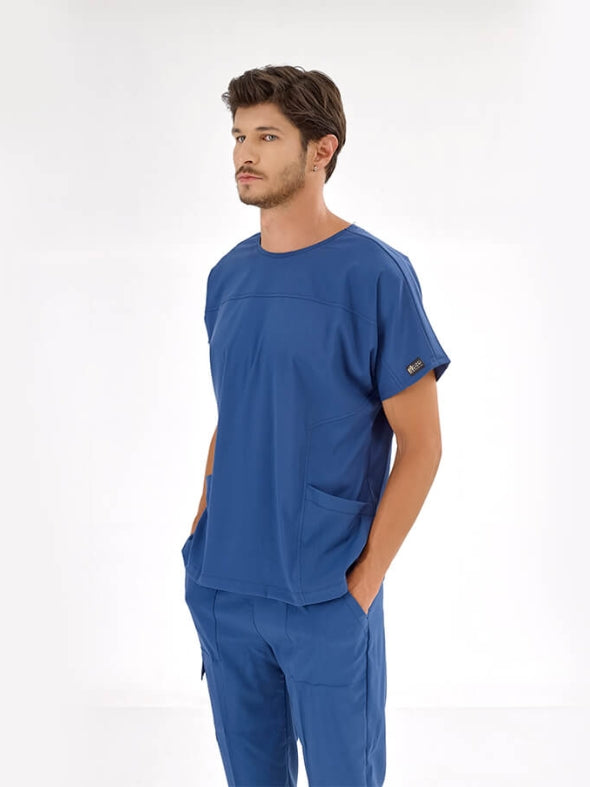 ლურჯი სამედიცინო კომპლექტი ექიმისთვის, ექთნისთვის, ლუქს ლიკრას ქსოვილისგან