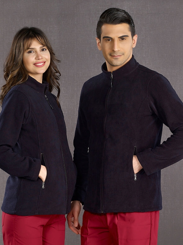 მუქი ლურჯი ექიმის/ექთნის სამედიცინო პოლარული ქურთუკი, პოლარული ქსოვილი
