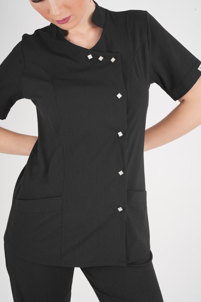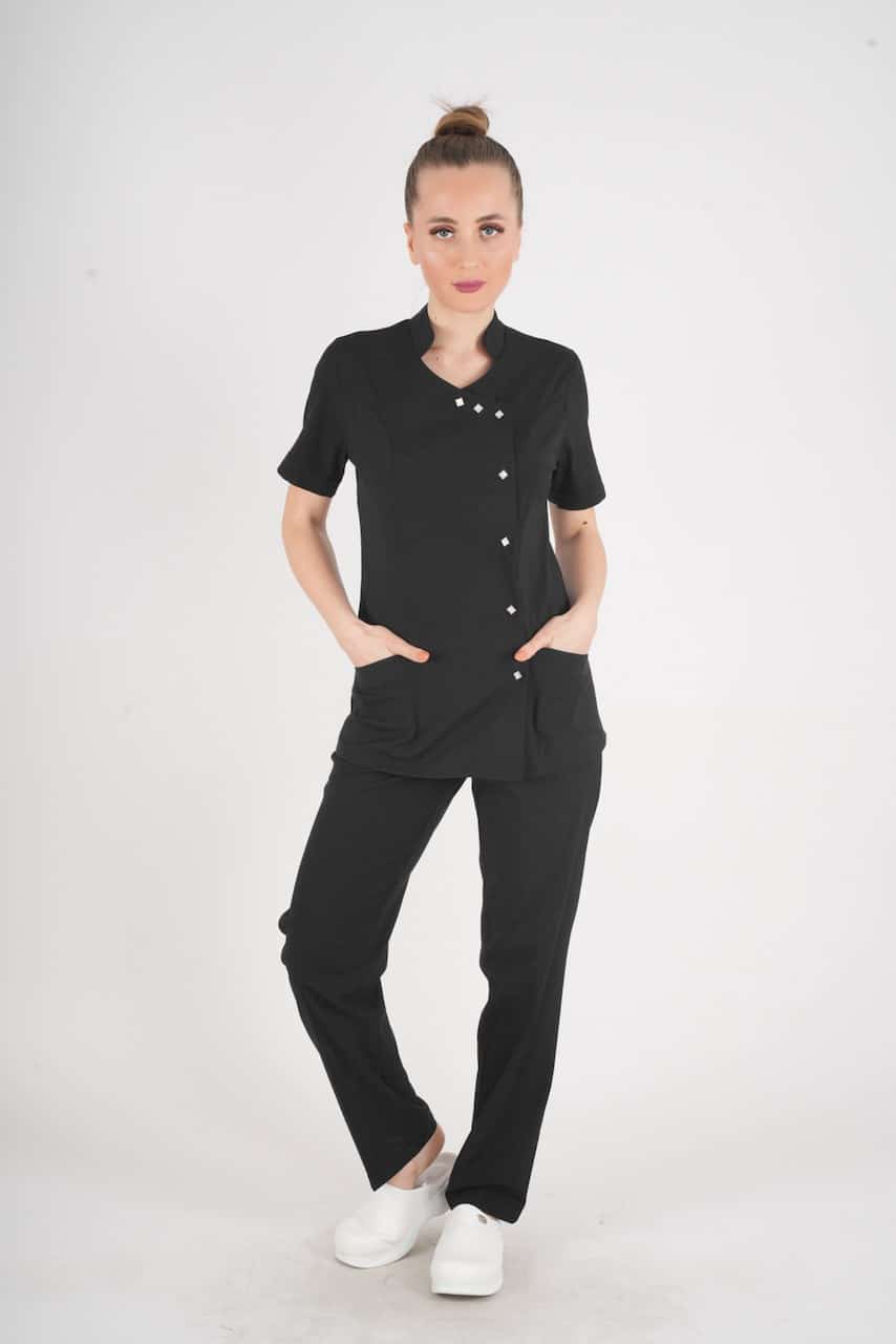 შავი ფერის სამედიცინო სკრაბი ექიმისა და ექთნისთვის.მხოლოდ ქალბატონებისთვის.